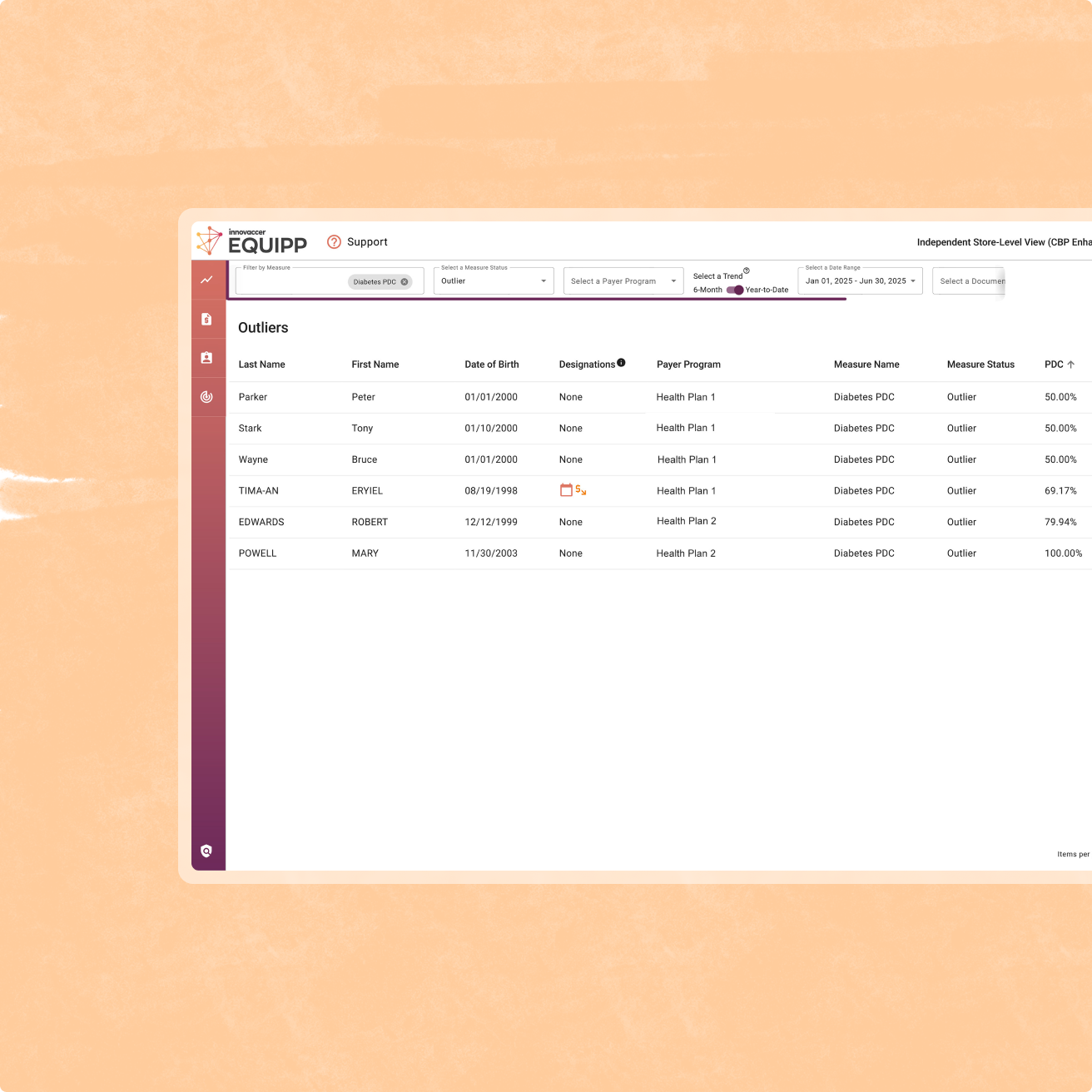 PQS provides pharmacies with the data and analytics to improve patient care and network performance. The EQUIPP® platform offers clear dashboards to track key quality measures like medication adherence and immunizations, and even forecasts patient needs.